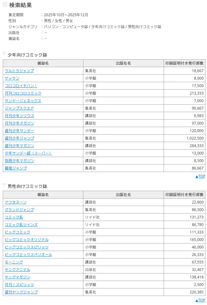 一般社団法人 日本雑誌協会 https://www.j-magazine.or.jp/user/printed2/index